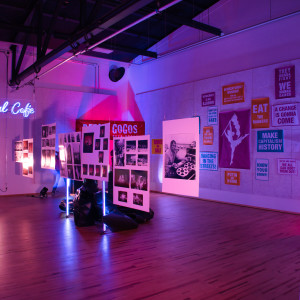 Reaktion auf die ökonomische Situation von Tänzer*innen im freien Bereich entstanden war und sich ironisch-kritisch mit dem Markt und der Vermarktung von zeitgenössischem Tanz auseinandersetzte. Auch Winklers „Dance Is Not Enough“ von 2013 war mit seinen Plakaten vertreten, ein Projekt, das sich mit dem Aufeinandertreffen von Staat und Bürger in den Krisen des Kapitalismus befasste und in dem Inszenierungen der Macht auf Inszenierungen des Protestes prallten.