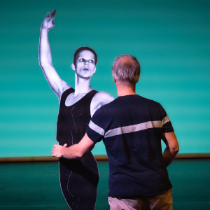 2023 war der in Berlin lebende Choreograf Christoph Winkler zu Gast bei STANDPUNKT.e. Christoph Winkler breitete im Bühnenraum, im Foyer und im Studio des schwere reiter seinen Kosmos aus, wobei Materialien und Filme ebenso zum Einsatz kamen wie Lecture und Performance. So bot das – vor und nach der Veranstaltung im großen Bühnenraum begehbare – Studio des schwere reiter eine veritable Ausstellung mit Fotos, Postern, Filmstationen und Materialien, die Schlaglichter auf das Werk des Choreografen warfen. Hier wurde beispielsweise das Projekt Winklers „Berlin Gogos“ in Aufstellern, Merchandise-Artikeln und Videos abgebildet, das 2006 als